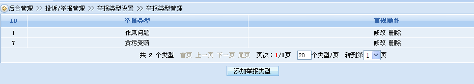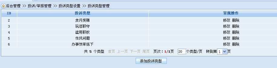 投訴/舉報(bào)系統(tǒng)可以自定義舉報(bào)\投訴的類別,如貪污受賄、玩忽職守、濫用職權(quán)、民生問(wèn)題、環(huán)境問(wèn)題等舉報(bào)/投訴類別。