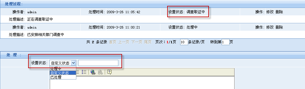 舉報(bào)\投訴處理過(guò)程中的各種狀態(tài)可以自定義。如根據(jù)政府部門具體情況設(shè)置“已提交相關(guān)部門處理”、“調(diào)查取證中”等等。