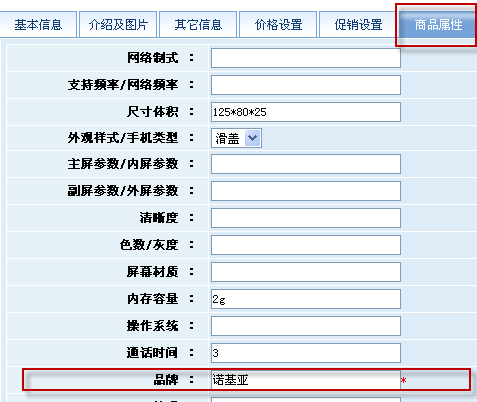 然后在節(jié)點(diǎn)設(shè)置中配置好相應(yīng)的欄目模板,最后再來(lái)在相應(yīng)的商品模型下添加商品,在商品屬性下新增的“品牌”字段后填寫相應(yīng)的手機(jī)品牌: