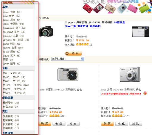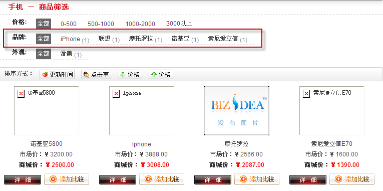 看看以上兩幅圖中的紅色框框部分,怎么樣,是不是恍然大悟啊?我們?nèi)ゲ簧俅笮?/span>B2C網(wǎng)站的時(shí)候應(yīng)該都使用過(guò)這個(gè)方便的篩選功能吧?之前也有一些用戶在論壇上提交過(guò)這個(gè)功能的開(kāi)發(fā)建議。在BizIdea? 3.0中,大家就可以親自體驗(yàn)到這個(gè)商品多屬性篩選功能了。那今天,我們就先來(lái)一睹為快吧!