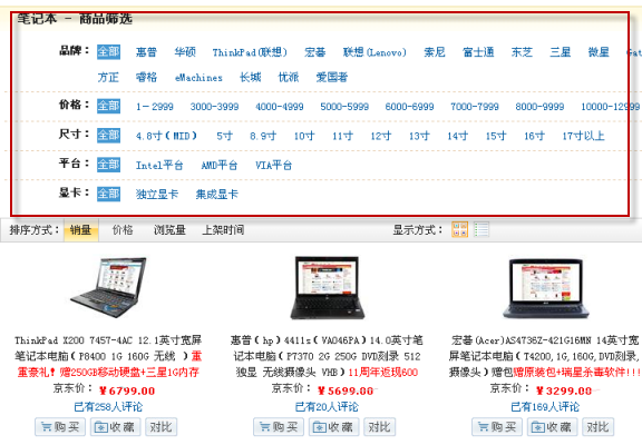 什么是商品篩選?也許有的用戶對(duì)這個(gè)詞會(huì)有點(diǎn)陌生。這個(gè)詞,解釋起來(lái)可能有點(diǎn)費(fèi)勁,不過(guò)沒(méi)關(guān)系,大家只要仔細(xì)看下以下兩幅圖估計(jì)就會(huì)恍然大悟了:噢,原來(lái)就是這個(gè)功能??!