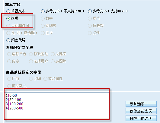 最后還要跟大家介紹一下的就是,除了單行文本、多行文本這兩種基本的字段類型外,系統(tǒng)還特別新增了“選項(xiàng)”字段類型,以豐富字段類型,增強(qiáng)篩選列表的擴(kuò)展性;同時(shí),新的“選項(xiàng)”字段類型還可以讓管理員在后臺(tái)的操作更為便捷。
