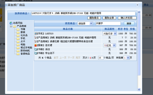 首先,我們需要將需要推廣的商品添加到推廣商品里,可以在后臺(tái)所有的已添加商品中任意選擇商品: